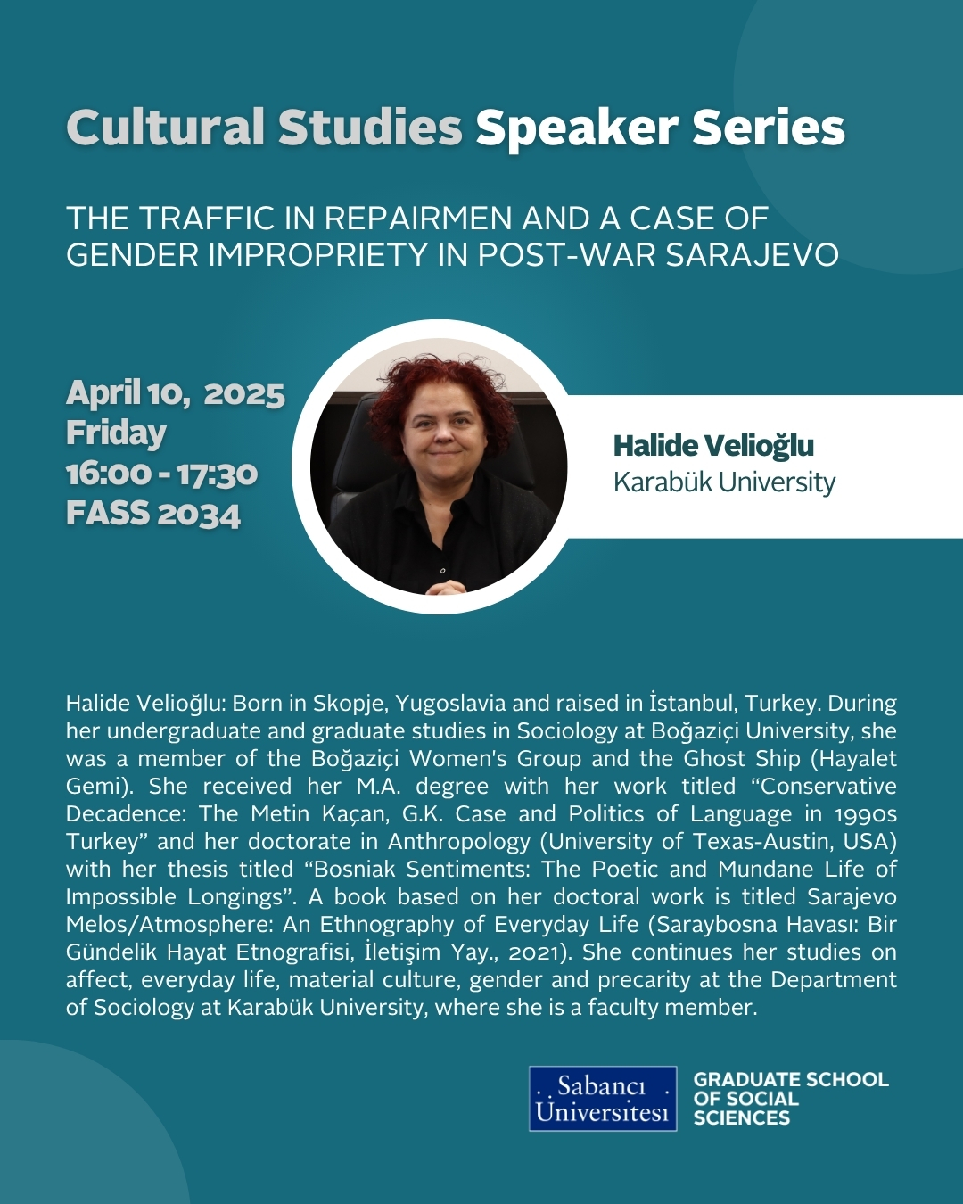 Cultural Studies Speaker Series, Halide Velioğlu (Karabük University)