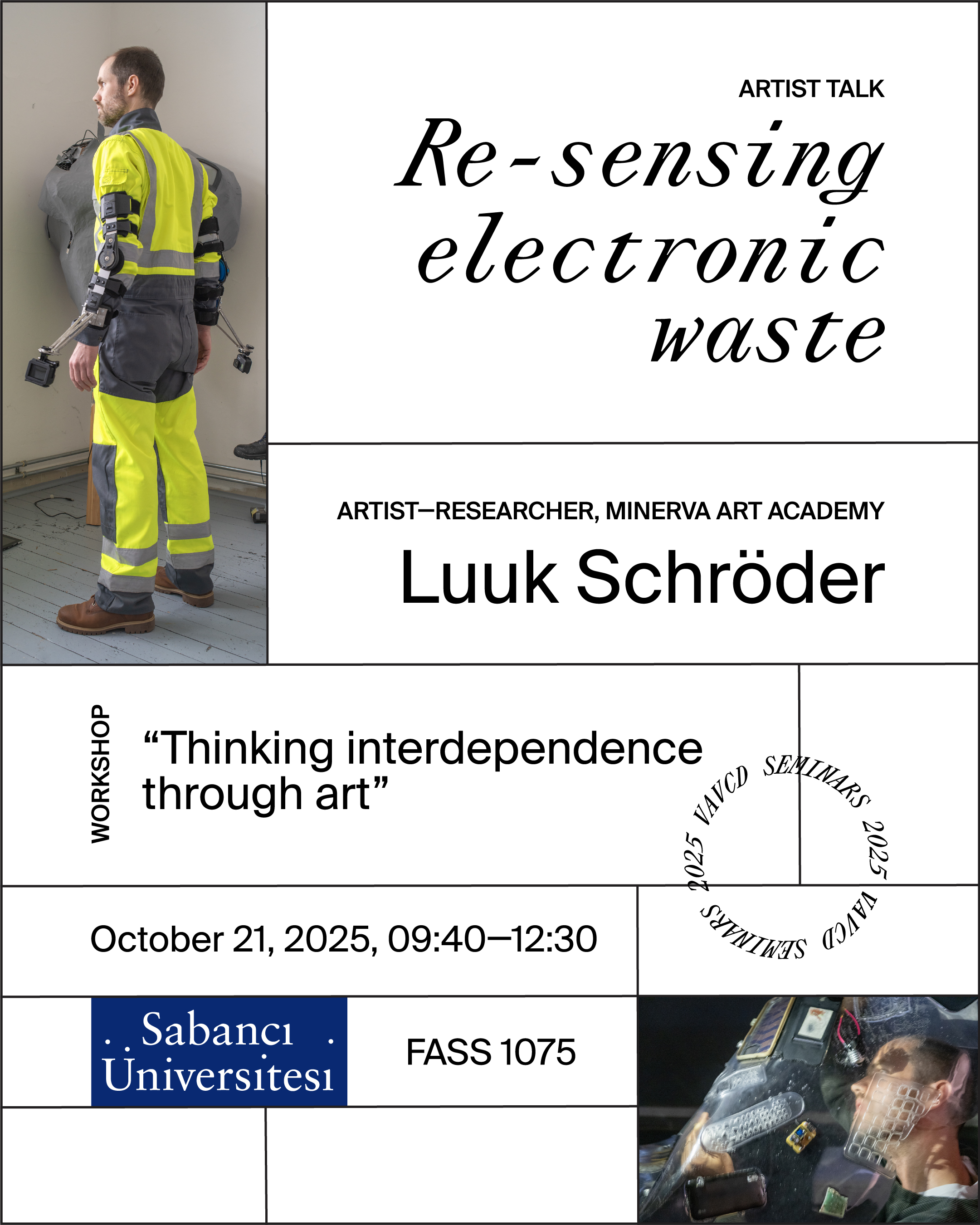 Sanatçı-araştırmacı Luuk Schröder, elektronik atıkları sanatsal pratik üzerinden inceleyen devam eden araştırma projesini anlatacak. Hollanda'daki elektronik atık geri dönüşüm merkezlerinde çalışan Schröder, genellikle görünmez kalan işçiler ve malzemelerle etkileşime geçen performatif müdahaleler gerçekleştiriyor. Schröder'in pratiği, sanatın medya teknolojilerinin arkasındaki maddi gerçeklikleri ve insan emeğini nasıl görünür kılabileceğini araştırıyor. Atölye çalışmasında sanatçı yöntemlerini ve bulgularını tartışacak ve sanatsal araştırmanın elektronik cihazlar ve atıklarla ilişkimize nasıl yeni perspektifler kazandırabileceğini ele alacak.