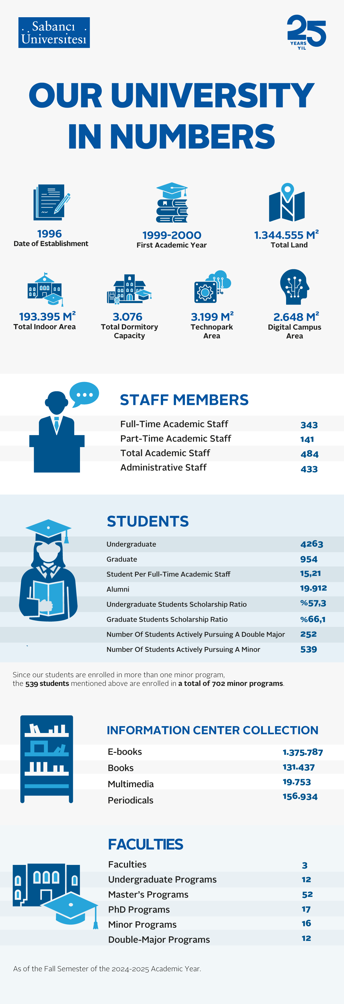 With science, technology, and social structures advancing day by day, the world needs more qualified individuals who possess the knowledge and skills required to pursue a career anywhere in the world. Aware of this pressing issue, in 1994 the Sabancı Group decided to establish a "world university" led by the Sabancı Foundation.