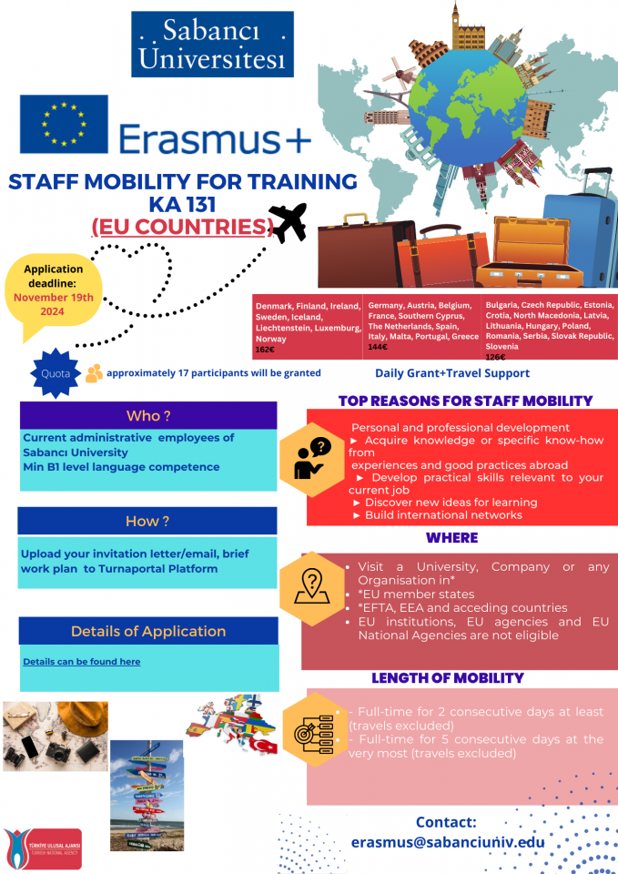 1st Call: Erasmus+ KA131 Staff Mobility for Training (EU Countries)