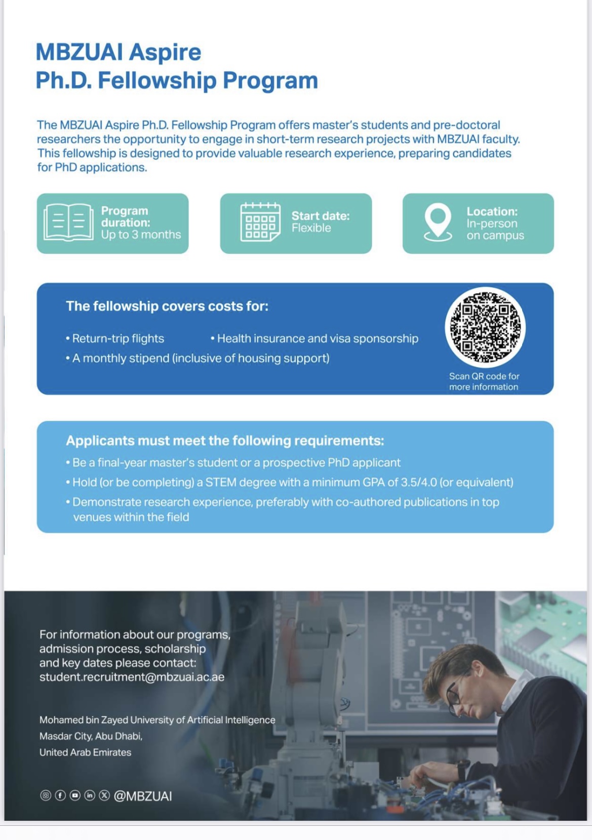 -Hear directly from MBZUAI representatives about AI research opportunities, campus life, and global networking prospects.
