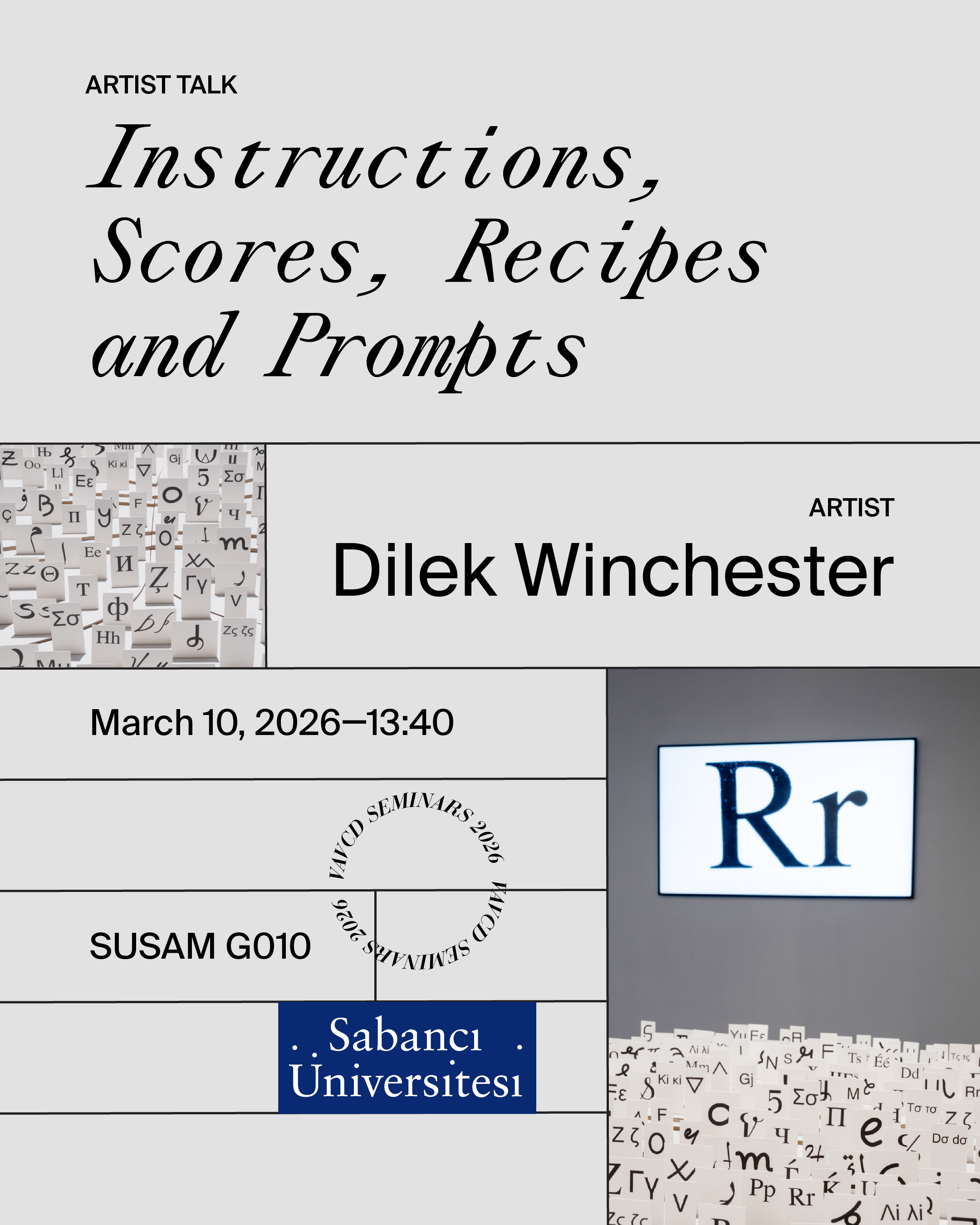 Dilek Winchester investigates how the printed word and typographic space create a sense of belonging in her research-based art practice. Her interest in the communities formed through publishing ranges from artists’ zines to the hybrid printing culture of the nineteenth-century Ottoman Empire. Her research focuses on alphabet reforms, the symbolic meanings of alphabets, and the politics of translation. In her curatorial work, she has examined artistic practices shaped by experiences of exile and migration.