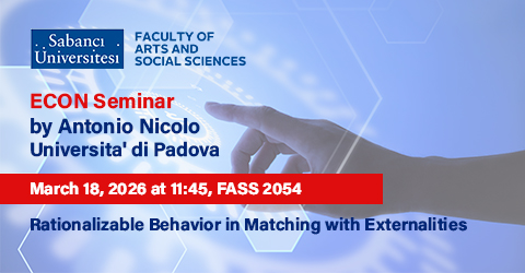 Antonio Nicolo' will present the paper entitled  Rationalizable Behavior in Matching with Externalities on Wednesday, 18th of March at 11:45 AM.  The seminar will be physical at FASS 2054 but it can also be attended at the following link: