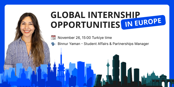 An exclusive session on November 26 at 15:00 (Turkiye time) will reveal exciting internship opportunities across Europe, with a special focus on Prague and Madrid.