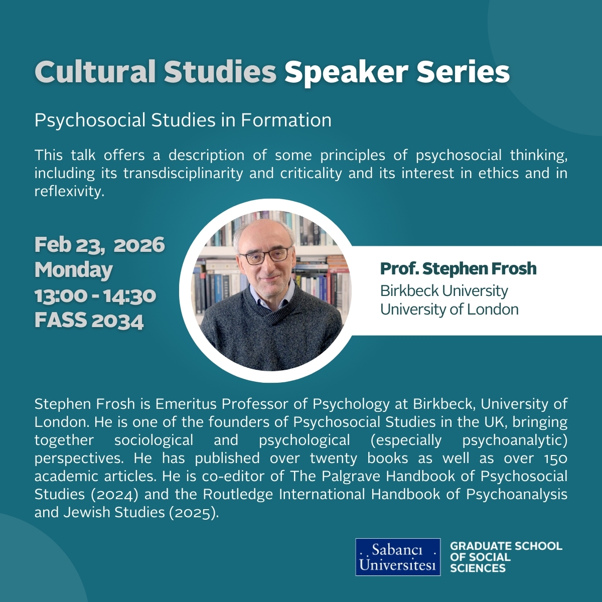 Cultural Studies Speaker Series, Prof. Stephen Frosh (Birkbeck University)